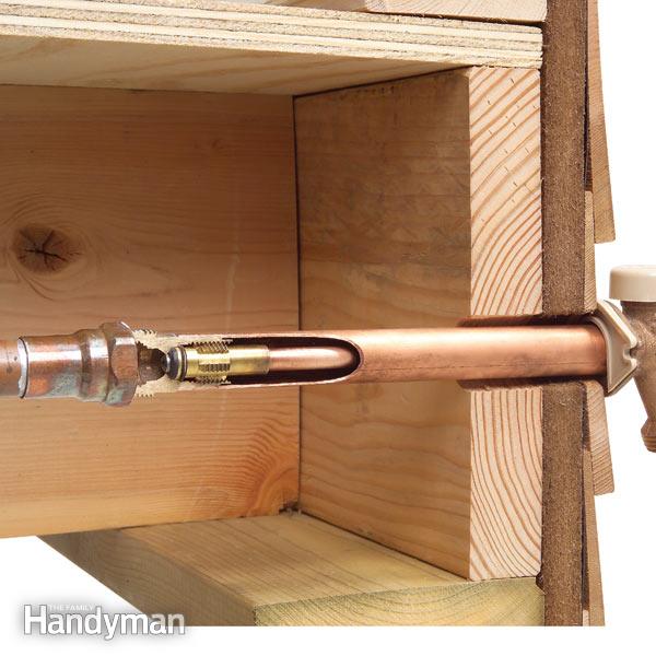 如果用的是其他的水龙头,必须把内部阀门关掉,外面取下水管并排出水管内的积水。