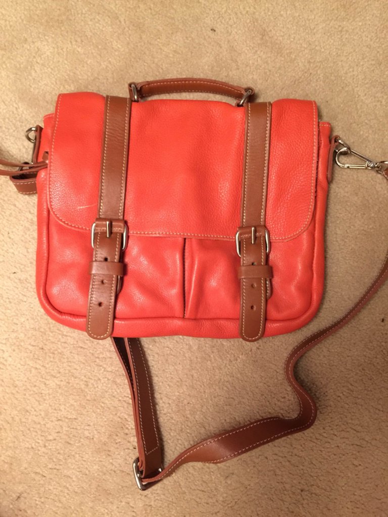 3.Roots真皮messenger bag,橘色,9新,有防尘袋 $100