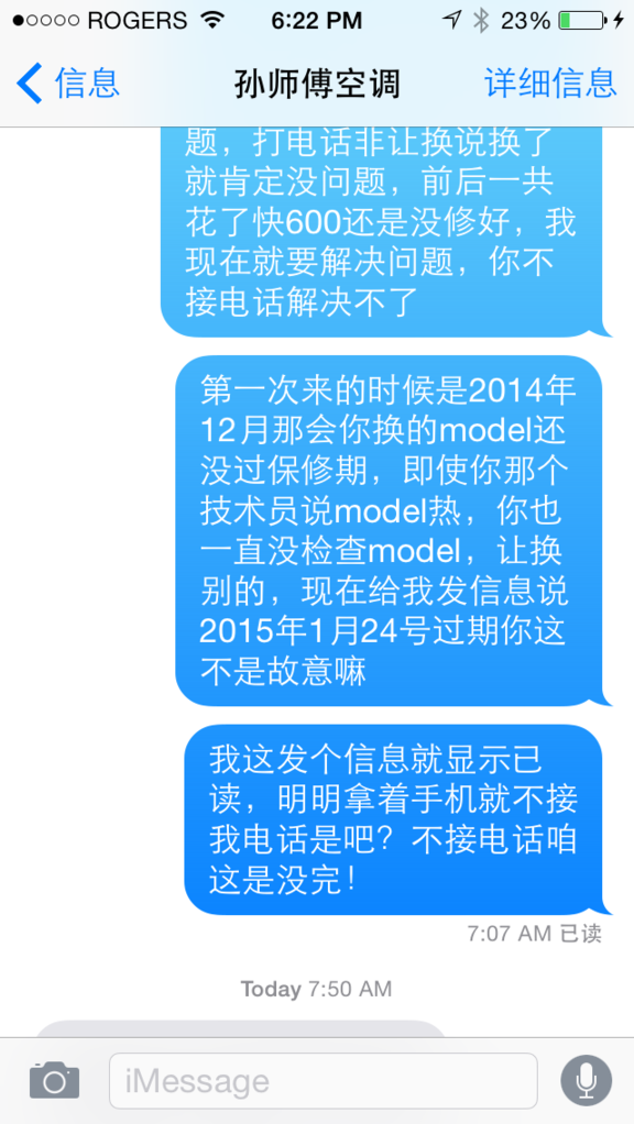 后来联系了个老外公司,第一次来给179加币保证给你修好再走,然后每个月交29加币一年,如果坏的零件是在500加币以下的免费换,当天来了个技术员一看就知道是问题一下就解决了,说是那个温度感应器坏了,之前找的那个华人公司根本就没碰过这个零件,我还把这事跟那个老外说了,那个老外一直在摇头说太不可思议了。