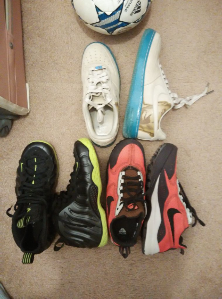 回国卖一双9.5成新黑色女高跟鞋,26寸自行车,新nike foamposite, 和登山鞋, af1