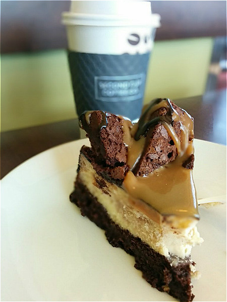 一杯咖啡,加一个BROWNIE CHEESECAKE ,额也享受一下这时光。