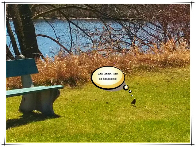 在嫩嫩的草地上,小鸟在找虫虫吃,并欢快的叫喳喳,看着我,似乎在说:美女,看啥捏,我帅吧,我帅得无敌,我帅得一塌糊涂,我帅得掉渣,喳喳~喳喳喳~~!:jiayou: