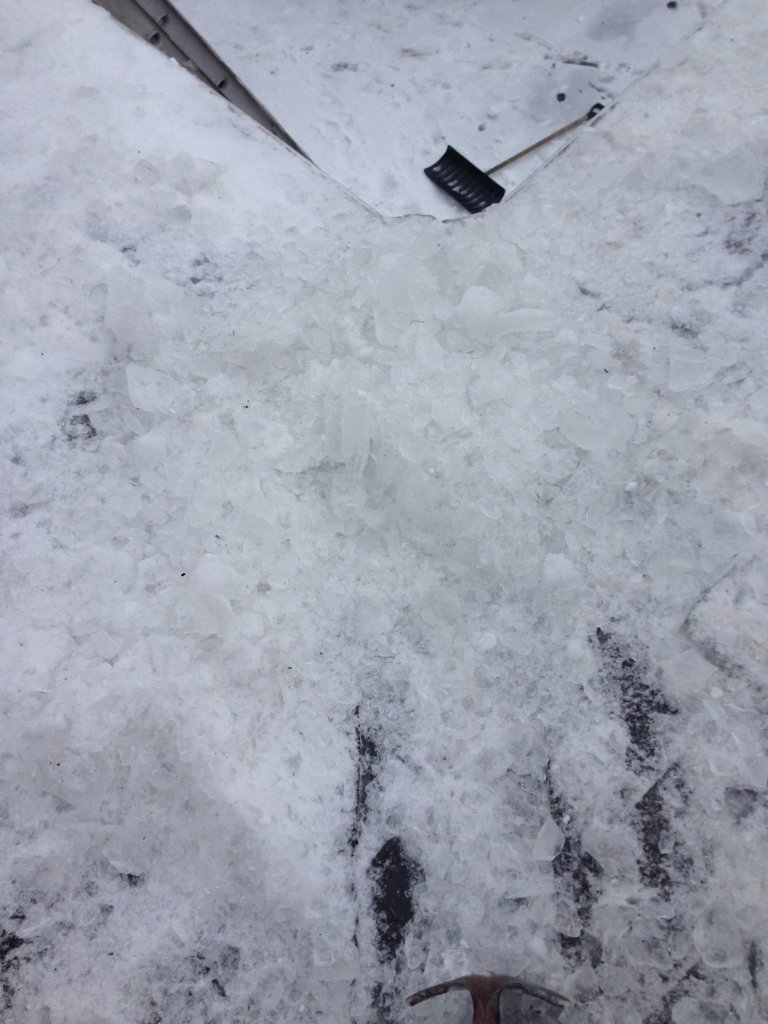 冬春交际很多屋顶积了很厚的雪,尤其是今年冬天入冬以来下了好多次冰雨,再加之近期积雪开始融化,更有些屋顶保温不足会融化屋顶积雪,导致屋顶靠近房檐附近会积很厚的冰坝,这样屋顶高处的水再流下就会被冰坝拦住,水就会逆行顺着SHINGLE接缝进入房子.所以如果屋顶积雪较深或者 在ROOF VALLEY部分积雪很多一定要及时清理,否则按照目前的建筑标准和渥太华BUILDER的施工水平来看渗漏的可能性还是很大的.所以及时清理是关键.请看下面冰坝图片,下面案例中屋顶积冰达到10公分左右导致室内漏水. 五星屋顶可以为您解决相关问题,咨询电话:613-882-7588, TOM