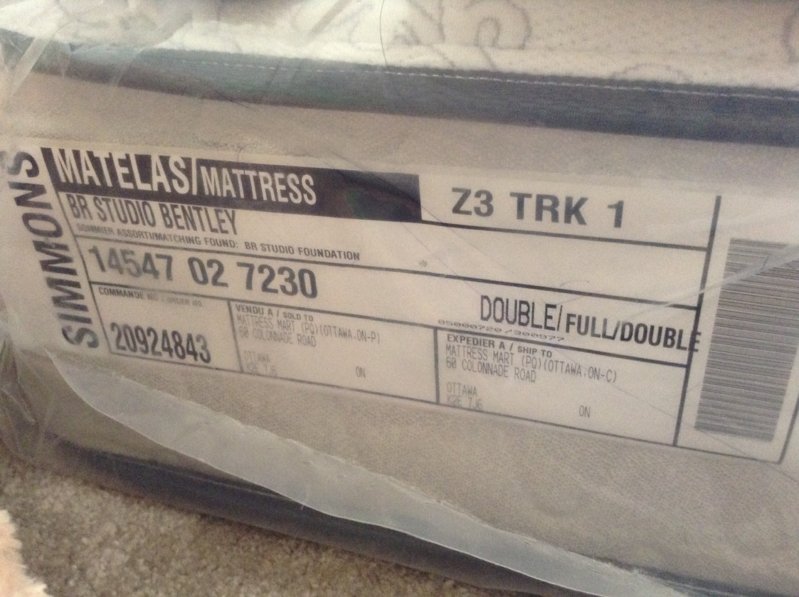 如题,double size,软硬适中,没有拆开外面的塑料袋包装,只要拿掉包装,跟新的一样。因为要搬家,所以要把家居卖掉。床$100,如果有需要,可以加送stand light(看照片)、小烤箱、微波炉等。但不包送货,需要自己来拿。