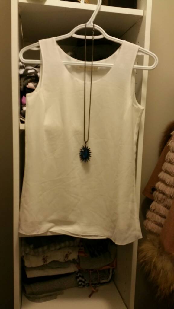 24:雪纺无袖白色上衣,很时尚,项链不出售,现8