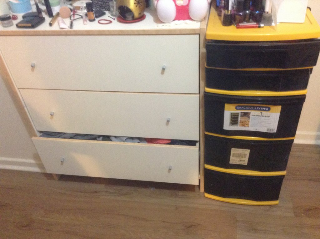 3:黑色 5 个 抽屉的工具柜,在 Canadian tire 买的,$10