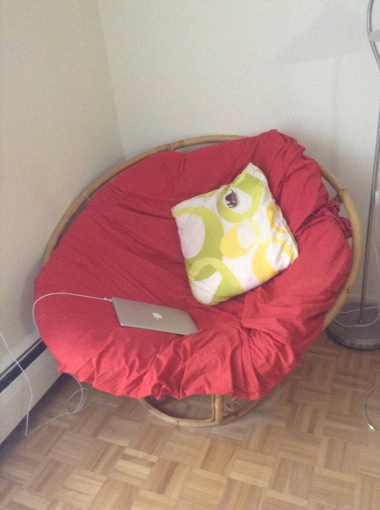 6 :Love chair 我也不知道该怎么形容这个,不过窝在里面非常非常舒服,我外面包了在IKEA 买的King Size 的床单,床单就花了我$12.99, 现在整个chair 只卖$18(sold)