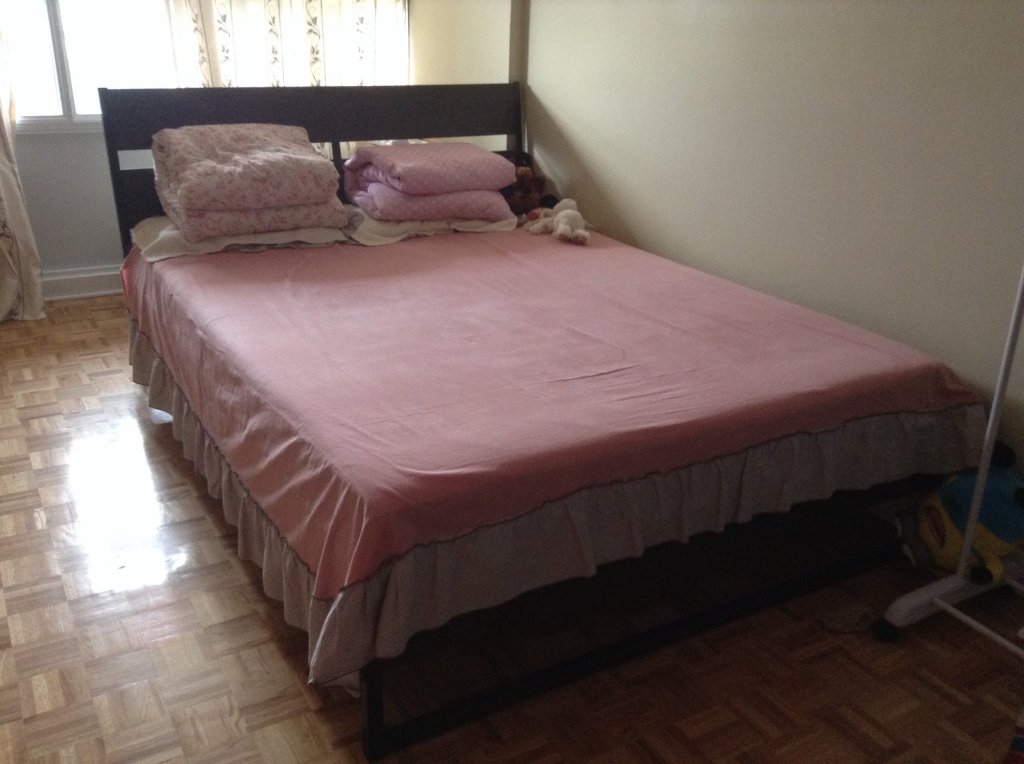 图一:宜家queen size床去年8月买,原价床身199,床垫299,不含税,很新很干净,现价240