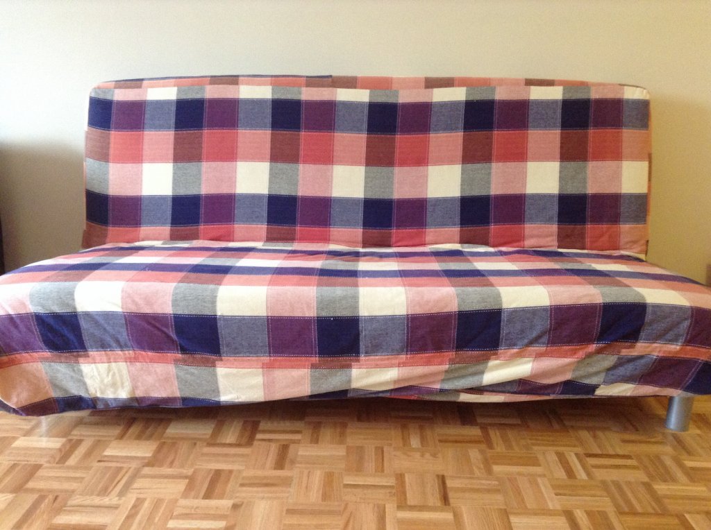 图二:宜家沙发床,超级实用,一套原配乳白色沙发套,一套自制格子套,现价150