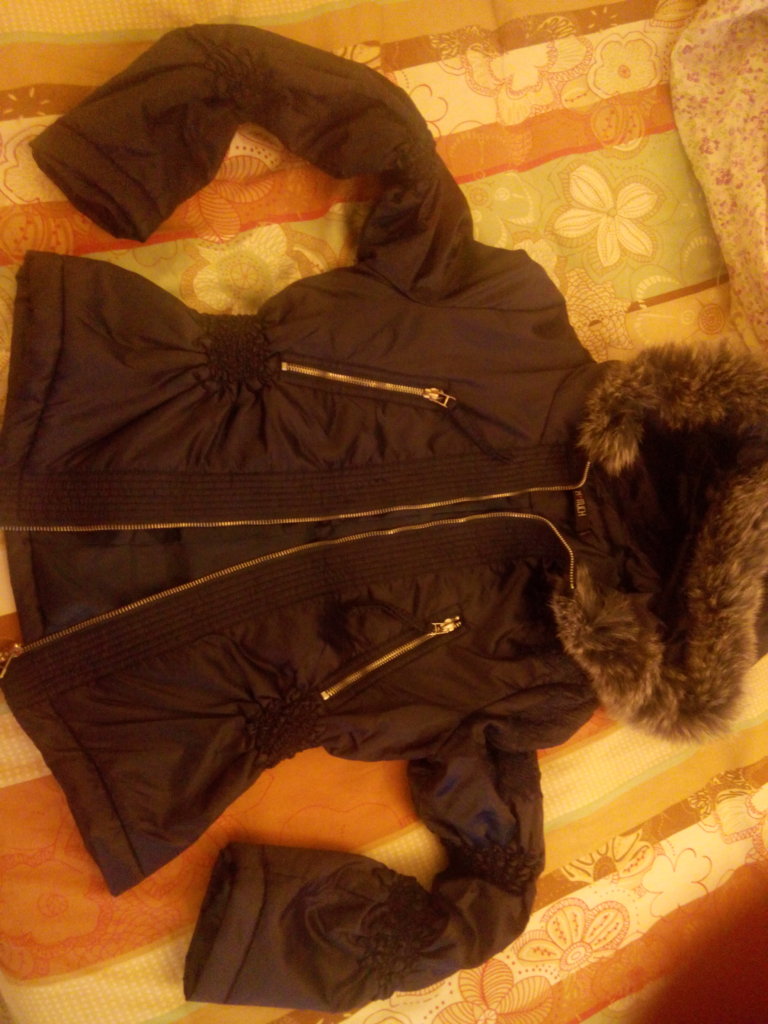 1,短棉服,带毛领帽子,藏蓝色,上身非常显瘦,适合s-m的妹妹,10刀