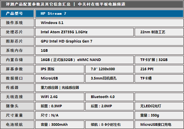 HP Stream 7配备一块7英寸IPS材质显示屏,1280x800的高清分辨率,可以达到170°超宽视角,还原真实而精细的画面,带来异常出色的视觉体验效果。预装全新Windows 8.1 操作系统,Office365 软件,轻松运行Word,Excel,PPT 等办公软件,随时处理商务工作。HP Stream 7
