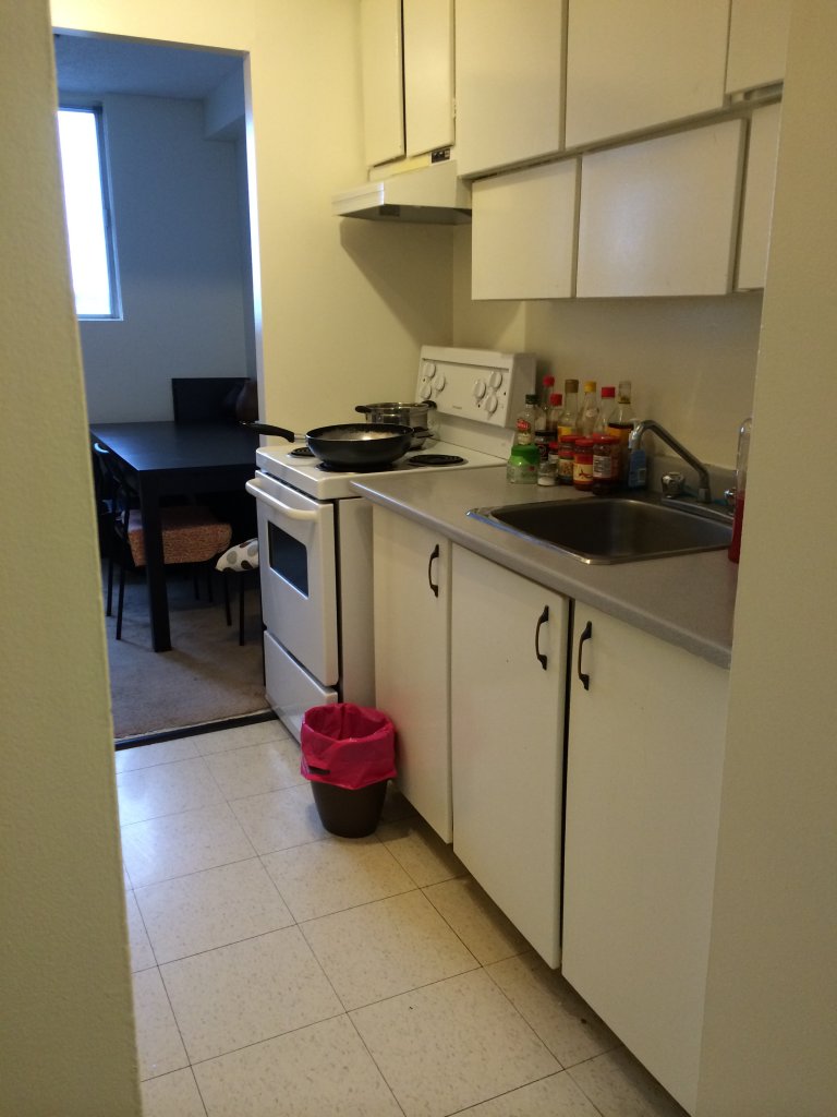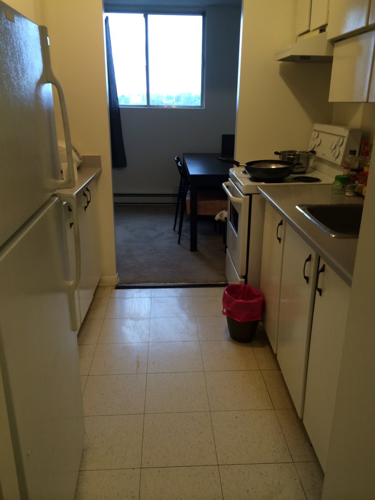 地址在1735 Riverside Dr, Ottawa. 一室一厅(客厅很大,可隔离),一卫一厨,楼下有洗衣房,游泳池,小超市