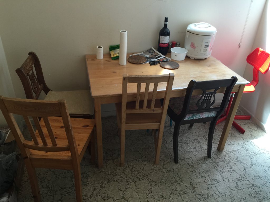 2. 八成新餐桌送五把椅子40刀。再送一个透明桌垫,非常易清洁。