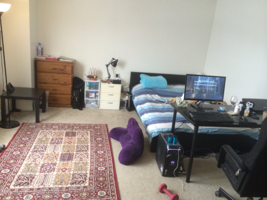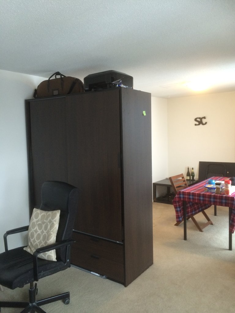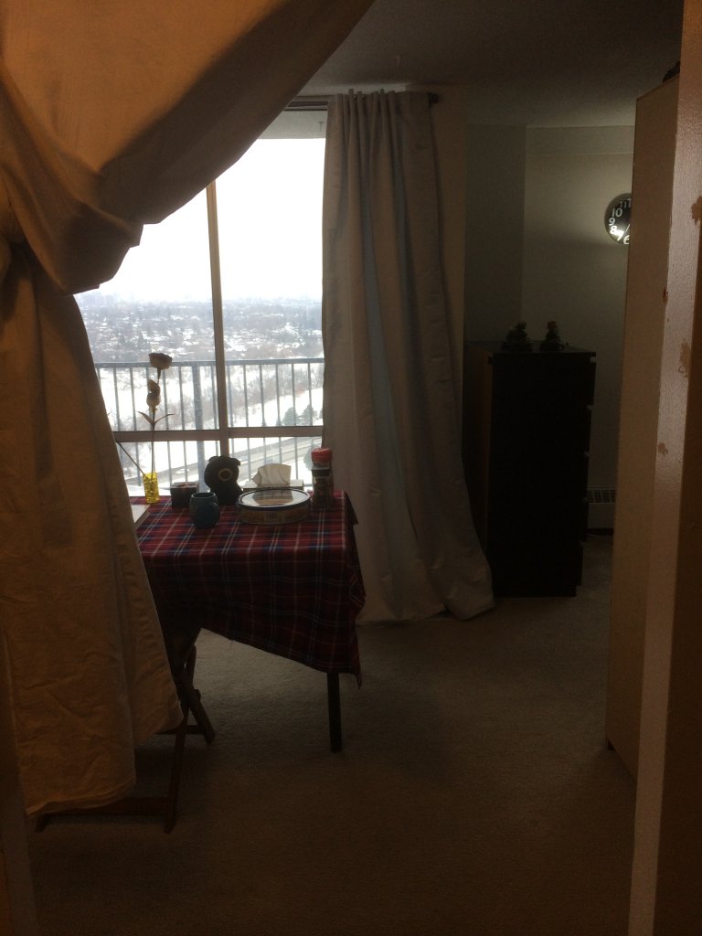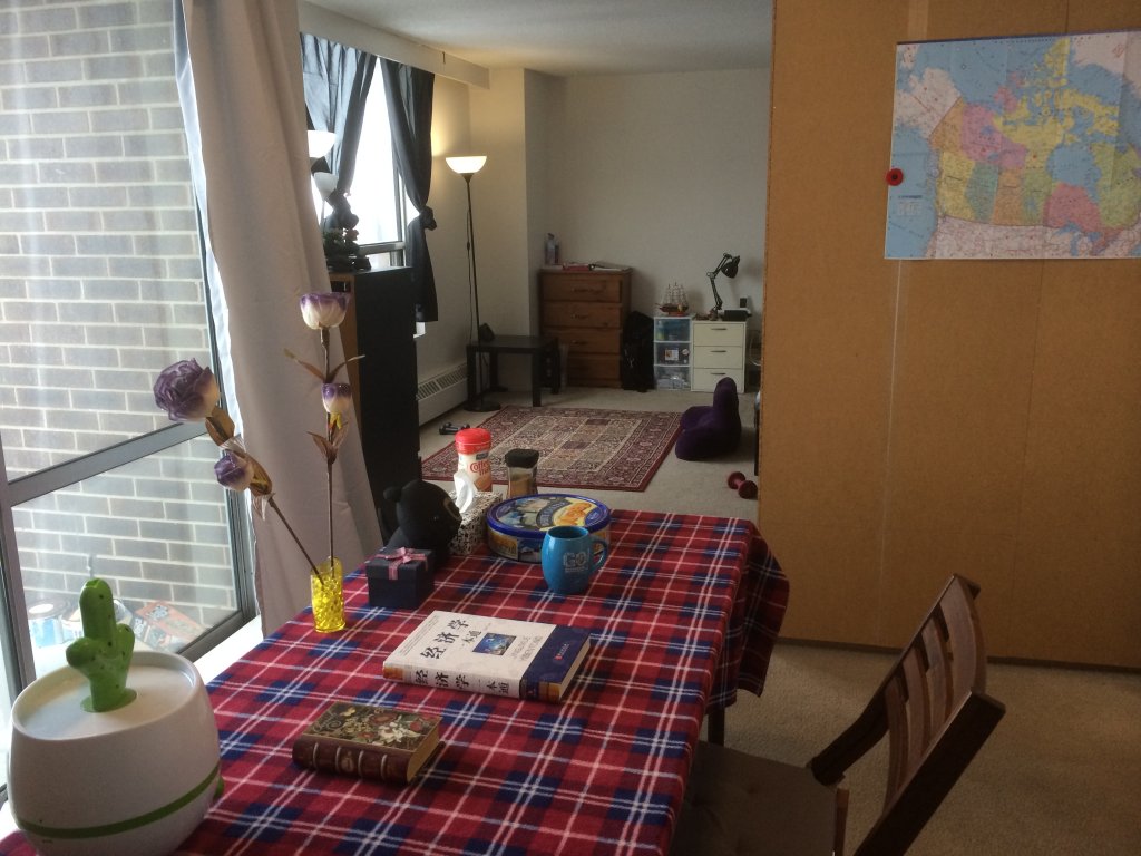 客厅6,7两月出租,家具、厨具齐全,300每月,下为室内及窗外图片。