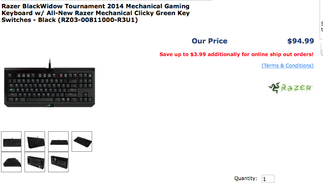 (Sold)Razer BlackWidow Tournament 2014 Mechanical Gaming