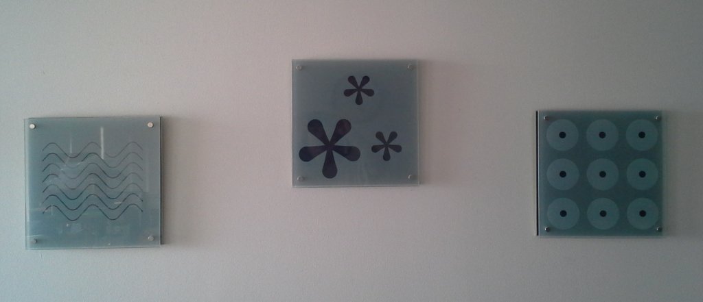 6) 墙上装饰 Glass wall decorations – 3-piece reversible background blue/red $20
