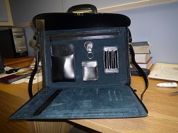 Black leather briefcase in good conditions, made in Italy, 17”(wide) x 12”(tall) x 7"(deep at bottom), 2 interior compartments, 6 interior pockets plus built-in keychain and pen holder. $70. Contact by email at jshenottawa@gmail.com or call/text 613-867-6001.