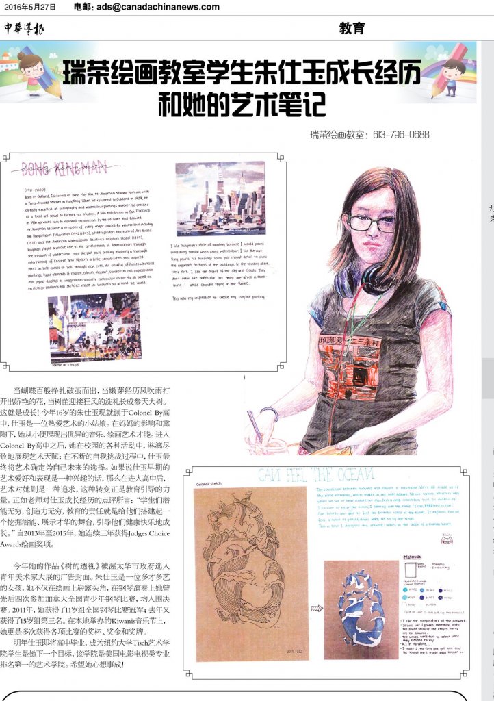 入夏时节,渥太华的孩子们又迎来了一年一度的暑假。暑假生活应该怎么安排?专家提出两点建议:一是要放缓一下平时紧张的生活节奏,孩子们好好地休息,开心地玩耍。二是针对个人的兴趣,对孩子们做一些强化训练,丰富一下课外知识,学习一些相应技能。为此,瑞荣绘画教室为孩子们准备了内容丰富的暑期活动即暑期8月的第一个星期即8月3号到8月7号将举办一个为期5天的艺术夏令营,将通过一系列的活动,培养孩子们关于绘画的欣赏眼光、参与兴趣和表现方法。 我们知道我们的生活并不缺少美,只是缺少发现美的眼光,如何才能具有发现美的眼光,首先要学会欣赏,尤其是学会欣赏绘画作品。一幅画作往往是艺术家对生活之美的高度概括,艺术家们用线条和色彩等形式在传递着美的信号。但作为一个观众,尤其是少年儿童小观众,如何才能准确地捕捉到这些信号,这里面是有技巧的。首先要“看得懂”,只有“看得懂”,才能“会欣赏”;只有“会欣赏”,才会一遍遍地被作品所打动、所感染,久而久之沉淀下来的就是孩子们非常渴望的“艺术的修养”。因此“会欣赏”将是孩子们参加瑞荣绘画教室夏令营的收获之一。 如果说“看得懂”是“会欣赏”的前提,那么“有兴趣”“想参与”则是“会欣赏”的孪生兄弟。“会欣赏”的人必然“想参与”,而参与到什么程度?将取决于我们对“有兴趣”能维持多久。我们常说“重在坚持”,这个“坚持”说难也难,说易也易,关键看学习者有无兴趣,有兴趣者坚持不难,无兴趣者坚持很难。因此怎样保持兴趣,将是孩子们参加瑞荣绘画教室夏令营的又一收获。 对于艺术实践来说,看得懂、会欣赏、有兴趣还是一个低层次的参与。若想提升到能与艺术家双向交流的阶段,就必须掌握绘画的表现方法,就像古人作诗吟对,你出个上联,我对个下联,在合仄押韵中营造美的愉悦。绘画和写作、音乐一样,是我们表达思想感情的重要途径,掌握了其中的方法,就如同孩子们的脚下又多了一条路,眼前又打开了一扇窗。 瑞荣绘画教室夏令营将交给孩子们一把开启绘画艺术之门的金钥匙。