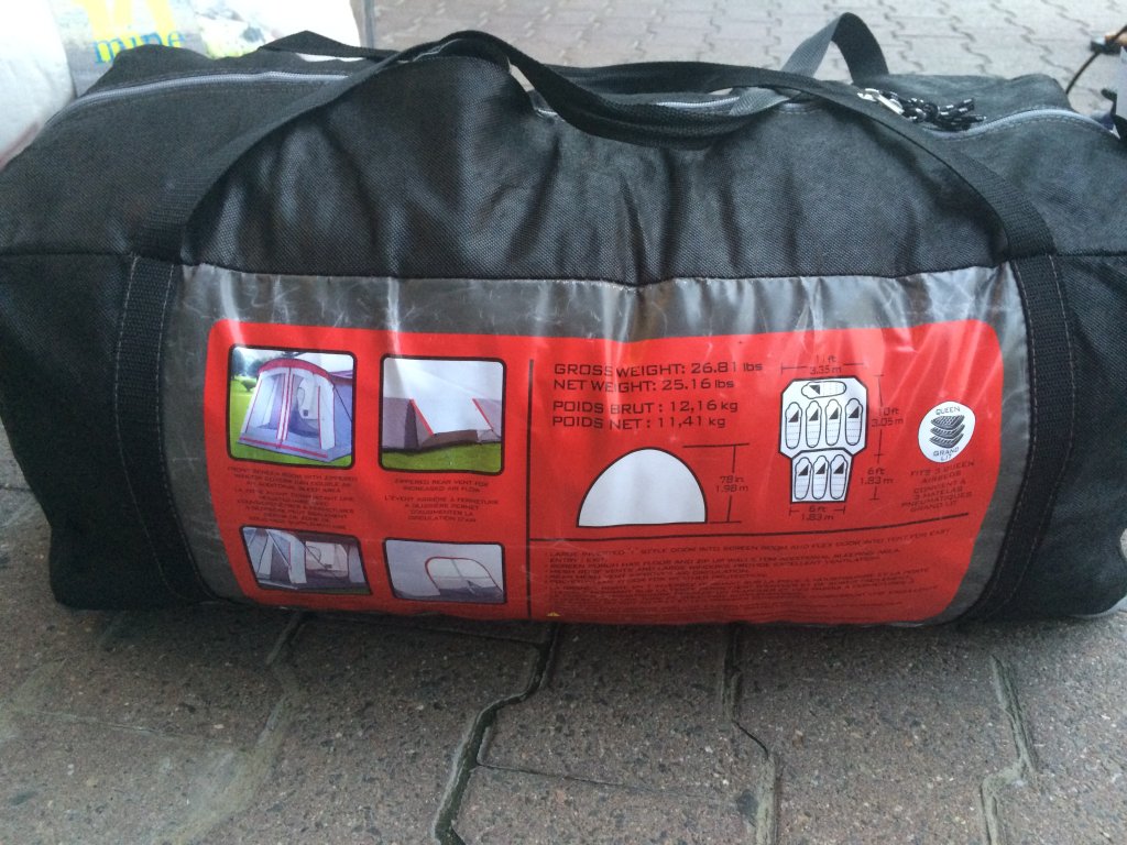 这个帐篷搭起来可以放三张queen size 的气垫,有隔间,防蚊门帘和窗户,只在室内用过一次,原价加税300刀,现在亏本180出售。
