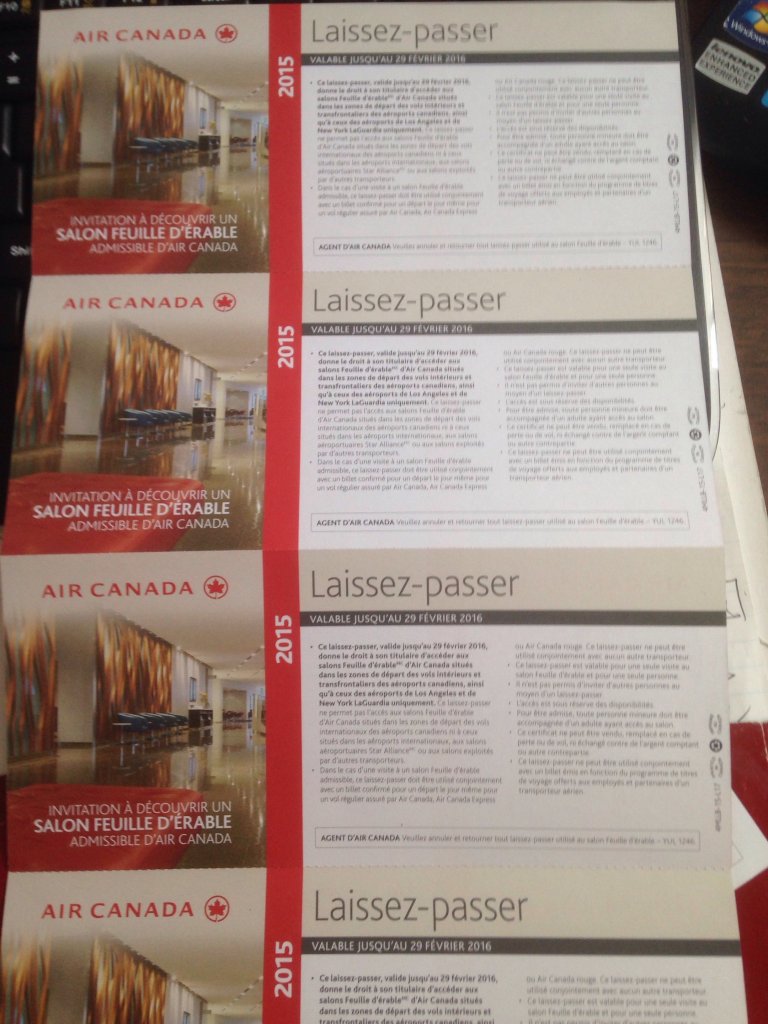 手上有四张Air Canada Maple Leaf Lounge 的门券,只要你选择加航,美联航等星空联盟航班出行,凭这个门券能进入加航在加拿大境内的所有贵宾休息室,进入休息室内后,室内所有酒水,食物随便吃喝,如果是你回国,在温哥华或者多伦多转机,进入休息室是很好的选择,温哥华和多伦多的休息室够大,又安静,食物种类多,在你转机等待的时候都能省掉一餐或者两餐的饭钱。 每张门券20刀,四张一起要70刀,短信联系:6138906886