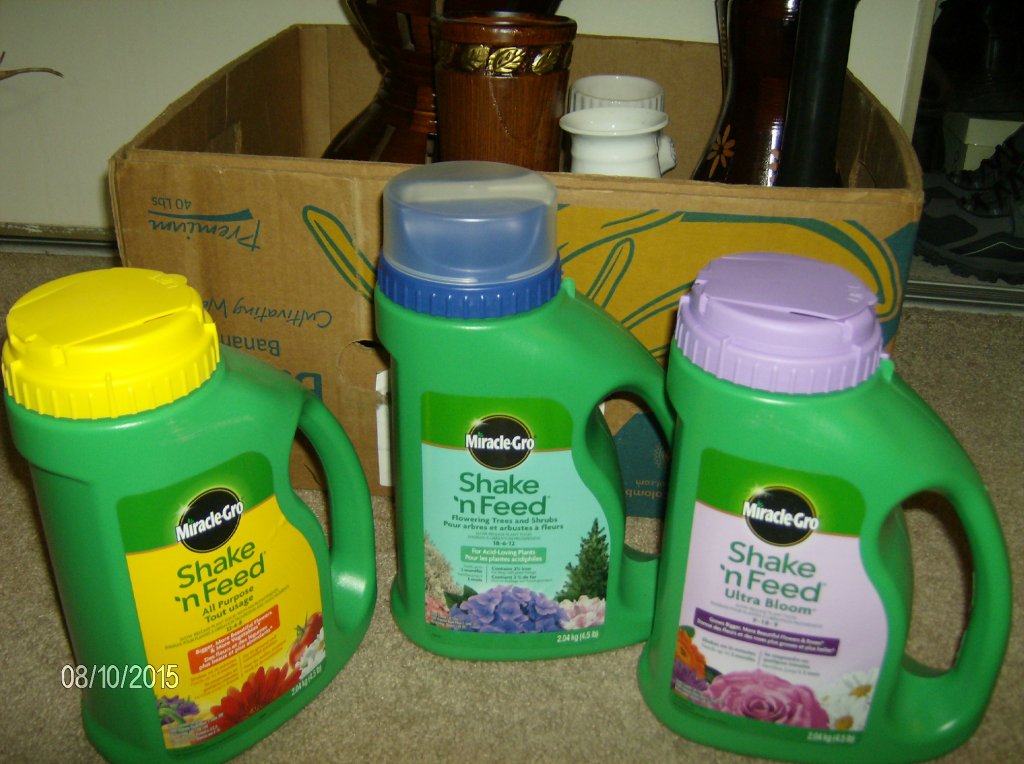 Slow-release的Miracle-Gro,管4个月;all-purpose的Miracle-Gro,泡水即化。