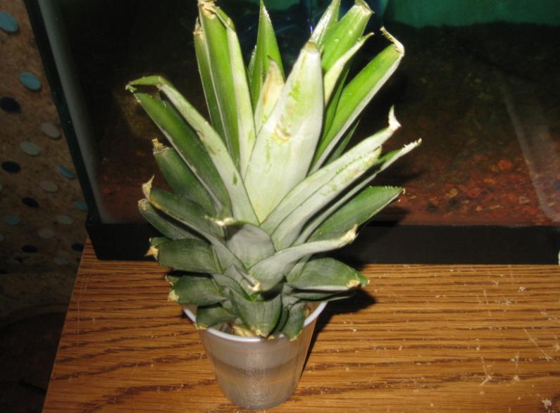 最近看到种菠萝,觉得很好玩,自己也尝试了一下,还真的长出叶子来了呢~
