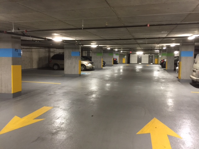 一居室单元: 开放式厨房,小书房,实木地板,660平方尺, 室内车库, 天花板高8.5尺, 不锈钢电器, 洗衣机, 烘干机。