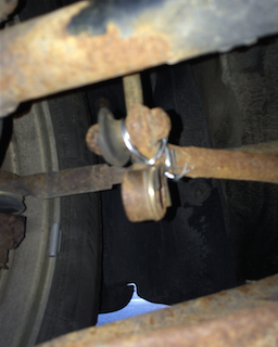 我有一辆 Toyota Camry 2000 LE,近日发现在向右转急弯时右前轮下有异响。经查看后是有一个连杆脱落,现临时用钢丝固定(见照片)。 我想预约修理,并想如果你们能够预订替换件,则我就不用跑两次了,但我不知它的名称。请你们大概估算一下修理费用。 这是俩旧车,没几年就报废了,只是短途上下班用,并不跑长途,所以也只想修理能安全行驶就可。 曾是你们的客户,对你们以前的修理服务很满意。谢谢。
