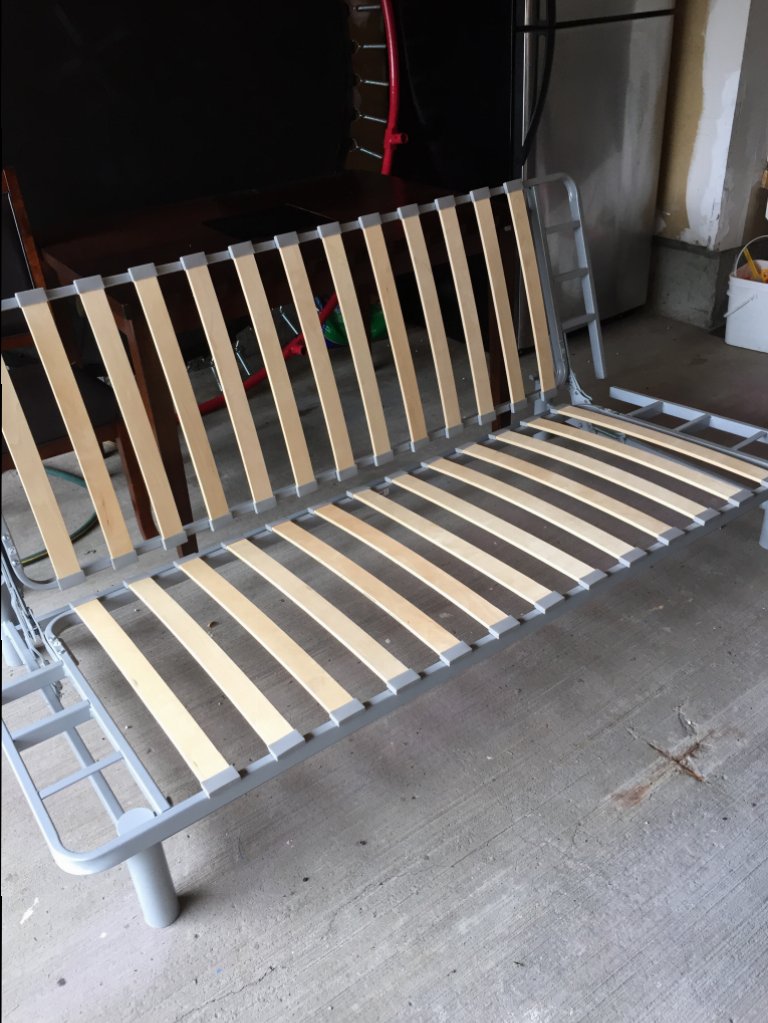 宜家买的全新沙发床,家里用了垫子,现在出售全新床架一副,材质和板床架一样,50元,可以考虑送货。