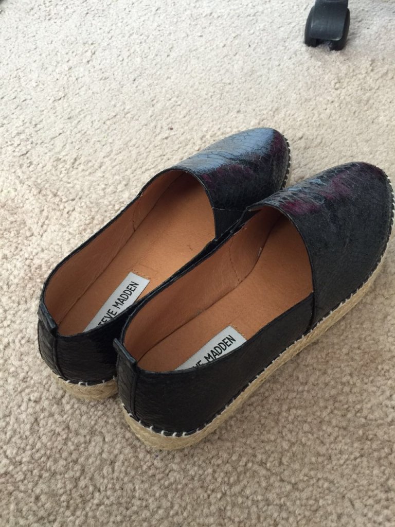 Steven Madden鞋也是全新没有在外面穿过可以看鞋底和边上都很干净 在Nordstrom买的 原价95左右 尺码是7.5 我是瘦脚穿着肥带不住 仅试穿 60出