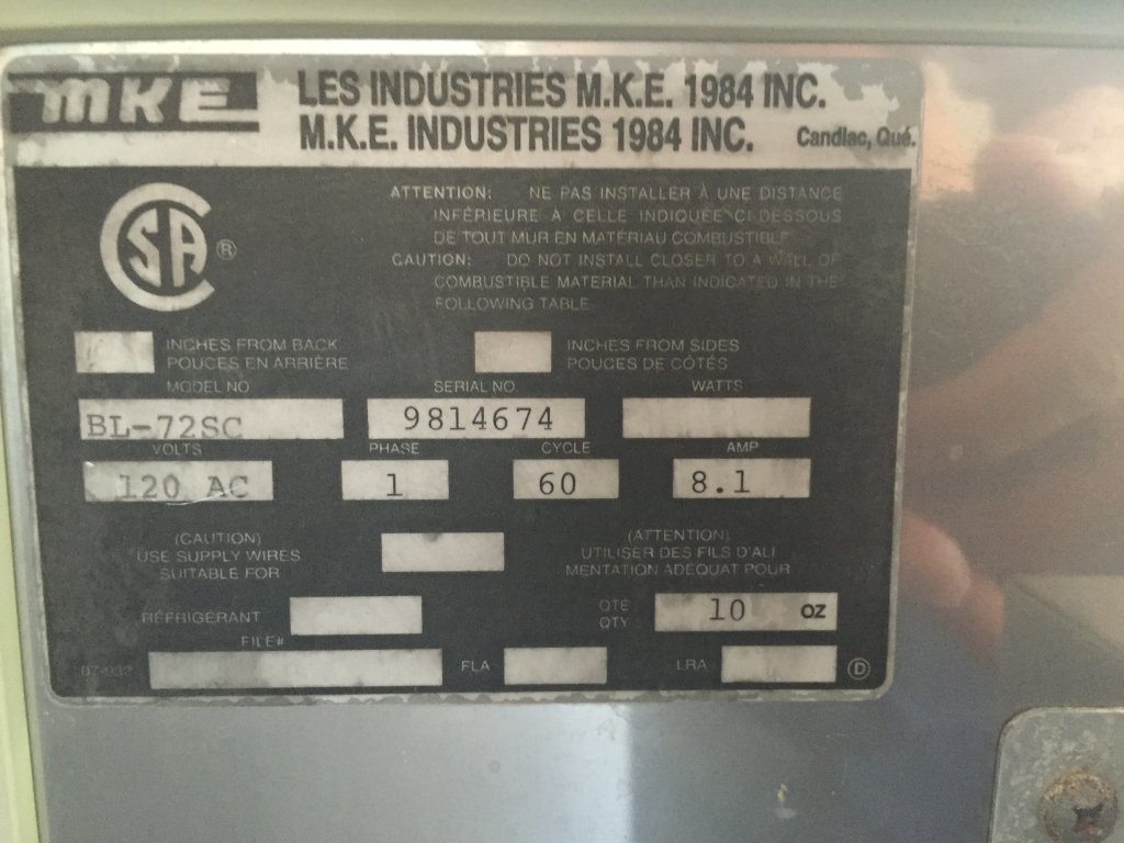 Refrigerated Table MKE BL-72SC Company: MKE # Model: BL-72SC Size: 72 "L, 35" H, 32 "D Volume (Inside) 19.3 ft3 / 547L 3 Door, 1 / 3HP, 600lb Original Price: $ 4,521 + Tax Sale Price ": $ 1,000 Reason for Sale: No longer in Use for Change of Business and it has Been Stored Away since 2012 condition: good Date of Purchase: 2008