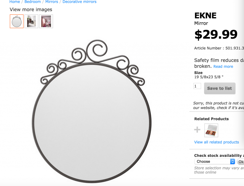 挂墙式镜子 很方便 $15(后面只需要一个小钉子就可以一直很牢固的挂在墙上)