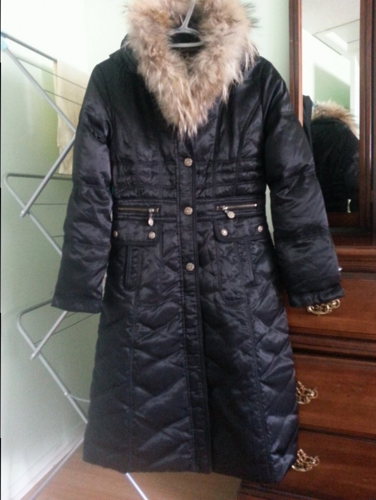 4.如图全新黑色长款羽绒服,S号,50 刀
