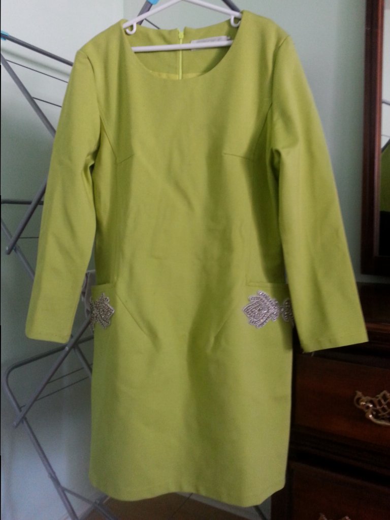 3.如图,全新长款美衣,M号,嫩绿色,穿上显得皮肤白皙。购于美国outlet,原价180加税,现在30刀。我穿大了