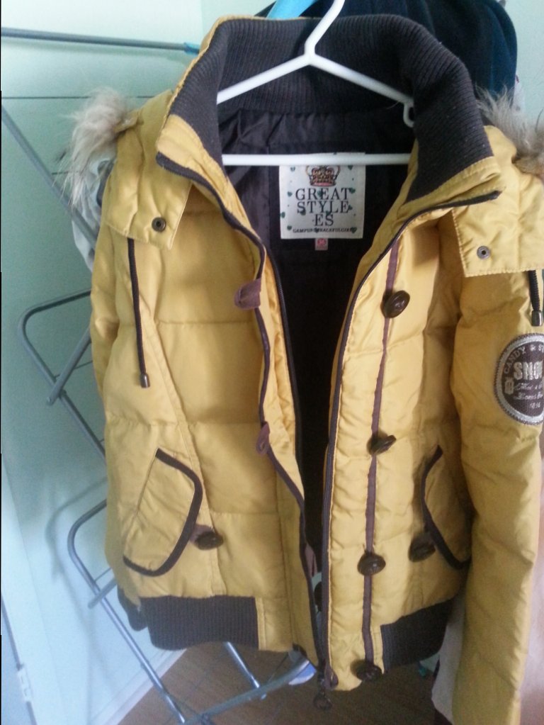 11.九九成新,黄色羽绒服,质量特别好, 20刀