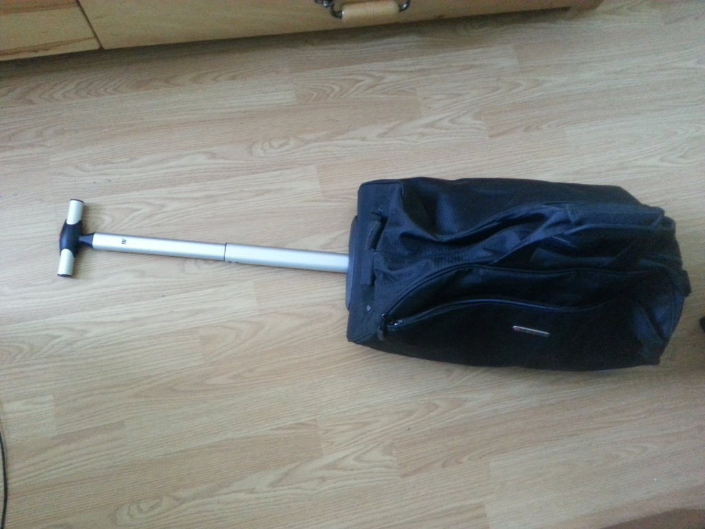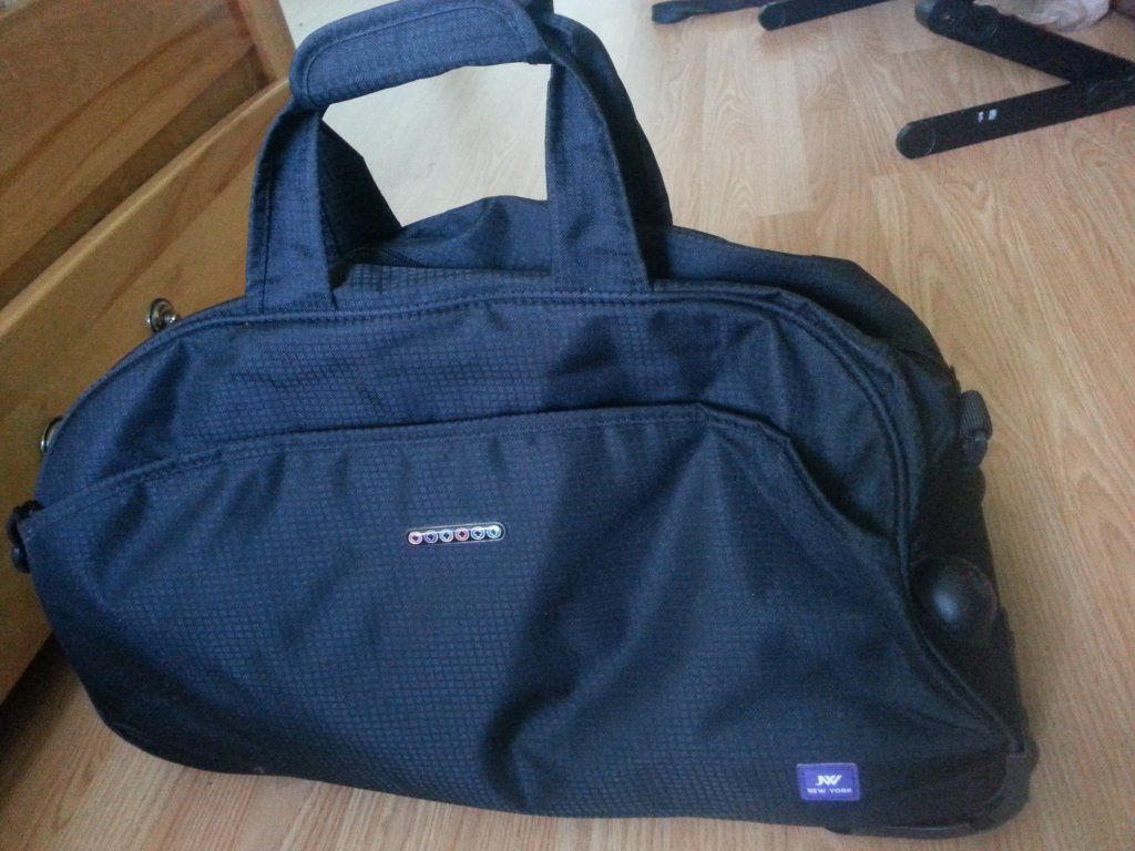 12.如图,全新黑色栏杆箱, 可以带上飞机的那种小型拉杆箱。美国outlet买的,50刀