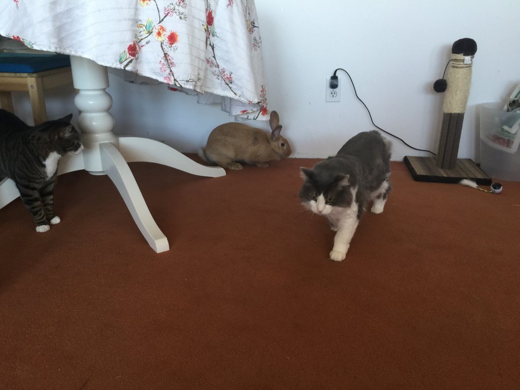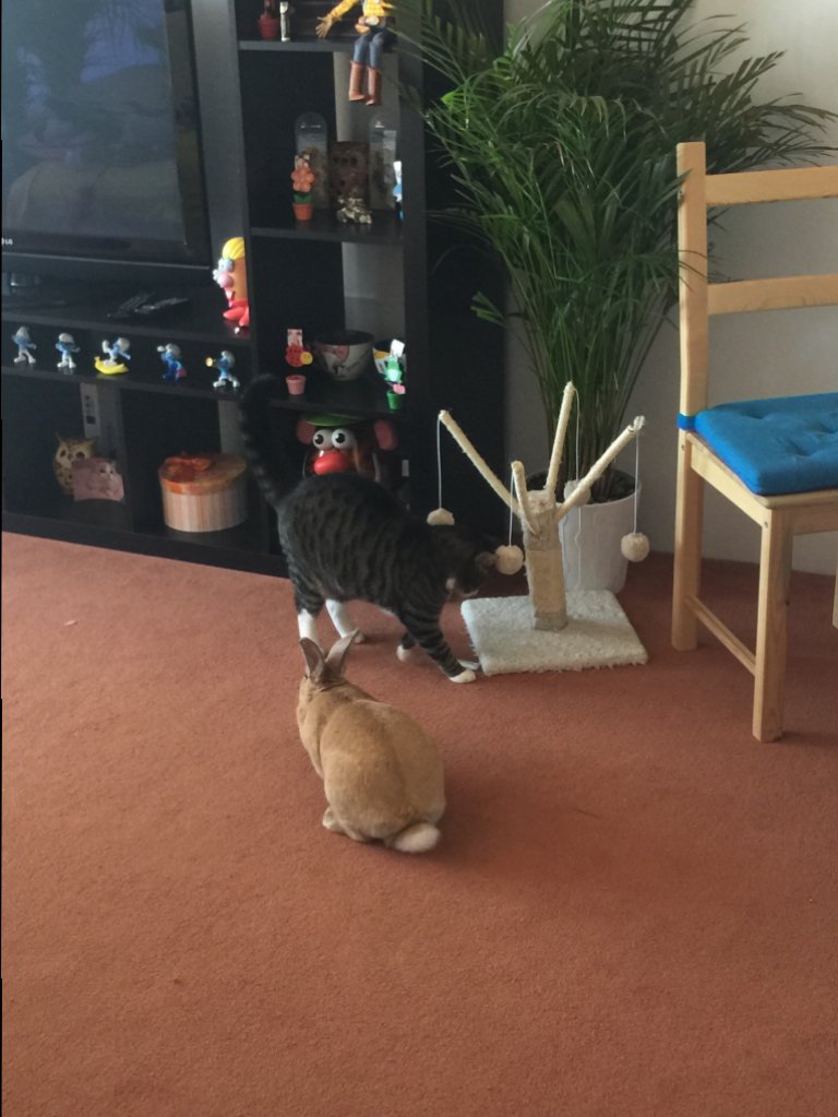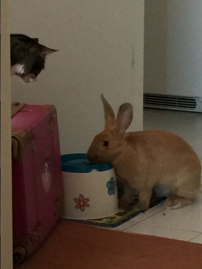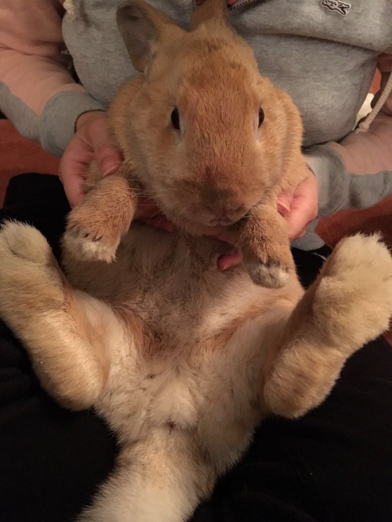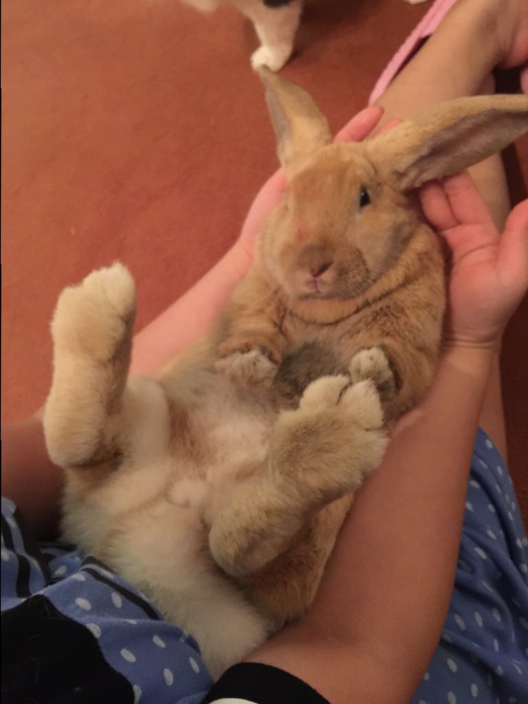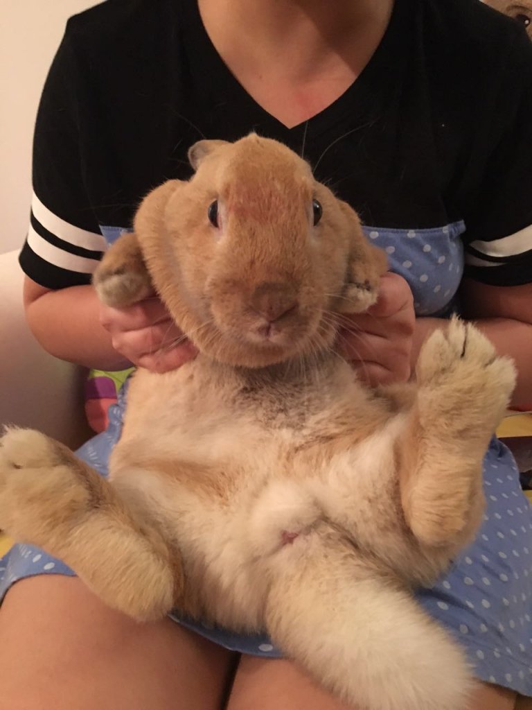 别看我们长得大 我们可将将才四个月 而且非常粘人 也知道如何上厕所 这种兔子在这边也很少有卖 一般纯种的不多 国内几乎没有~~她可以像猫一样和你互动 然后别以为只是兔子 其实也是可以上床的。。。弹跳力超级好