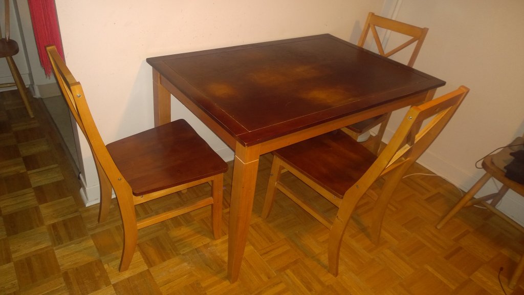 饭桌 (size: 1.2 m X 0.82 m), + 3 张椅子, $50
