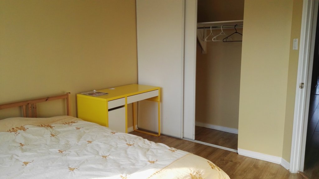 一楼有客厅,餐厅,起居间,厨房和卫生间。二楼有四个卧室,两个卫生间。地下室装修完成,有活动室和卫生间。出租的房间位于二楼,朝南,温馨雅致,舒适明亮,配备家具 (双人床,床头柜, 书桌等), 自用卫生间。