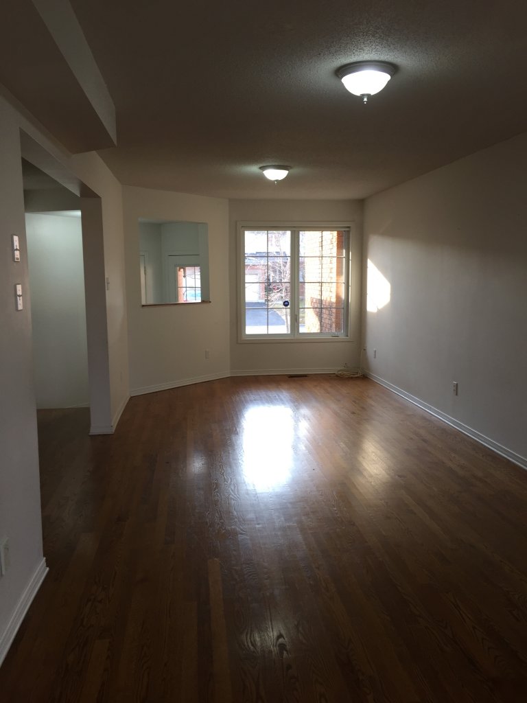 Spacious 1850sf townhome in desirable and quiet community. Open concept living/dining with hardwood floor in main floor. Master Bedroom with Ensuite Bath & Walk-In Closet, and 2 other good size bedrooms. Bright fully finished basement and very large backyard. No smoking and no pets. Convenient Location, Good access to Buses, Shopping, School, Park, airport. Walk to all amenities. Move in Condition!
