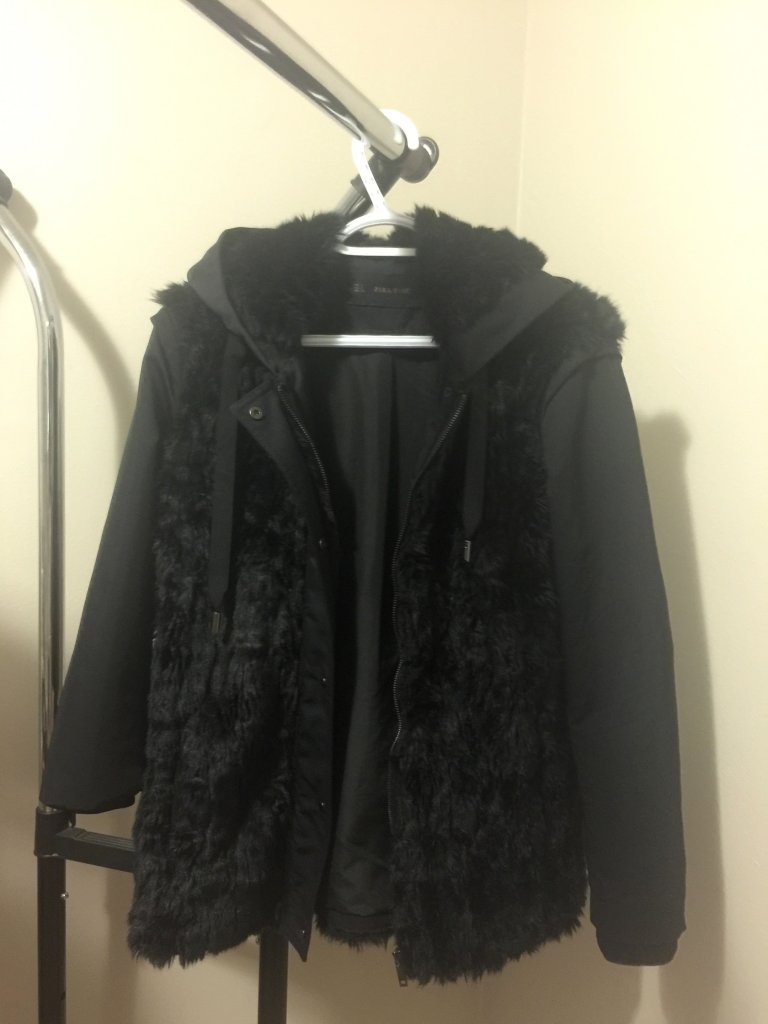 zara 仿皮草大衣,黑色毛茸茸,穿过两次,太大了L码 40刀