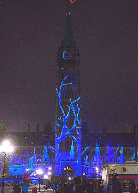 前两天渥太华一连不断的下了十几个小时的雪,除了马路,几乎所有的地面都是积雪,让人有点举步维艰,天气也比较冷,加上有点风大,让人更感到冷飕飕的,但相比往年,今年确是是相当暖和的了。去到国会山庄,虽然说不上什么人头拥拥,但也是相当的多人,都是奔着一个目的为了来看那个什么灯的。