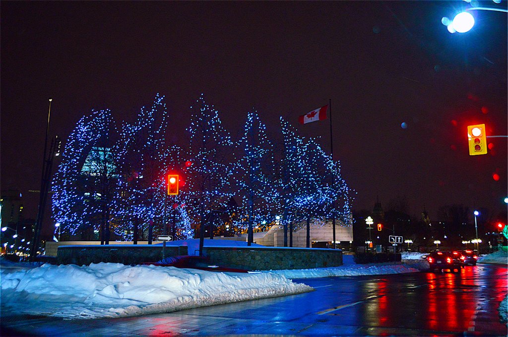 国会山晚上的灯光秀,几年前夏天晚上去看过一次,觉得挺不错的。雪夜里看来效果更好啊。