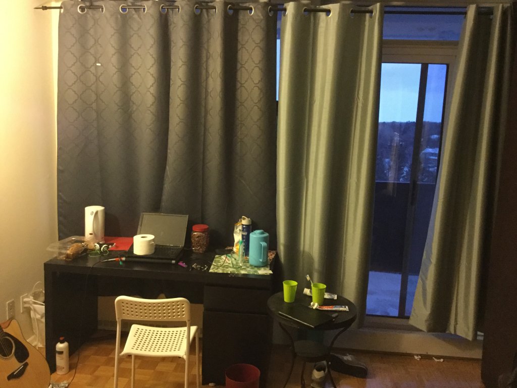 4幅厚窗帘,可以遮光的那种,因为如果有人入住就会留给住户,单卖的的话20刀一幅。