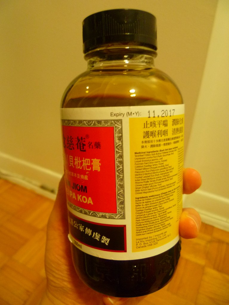 家里有一瓶京都念慈菴川贝枇杷露,是上个月妈妈来探亲的时候买的。我妈妈很奇怪,每次咳嗽都必须喝这个才管用,所以专门去大统华给她买的。结果就喝了大概两三天咳嗽就好了,之后就一直闲置。而我因为不习惯这个味道所以也不会喝,觉得那么好的药剩下那么多,而且保质期也还有近两年,就这么浪费了很可惜。最近天气很冷,不知道有没有习惯喝这个的老人或者孩子愿意买去备着?(有效期到2017年11月)