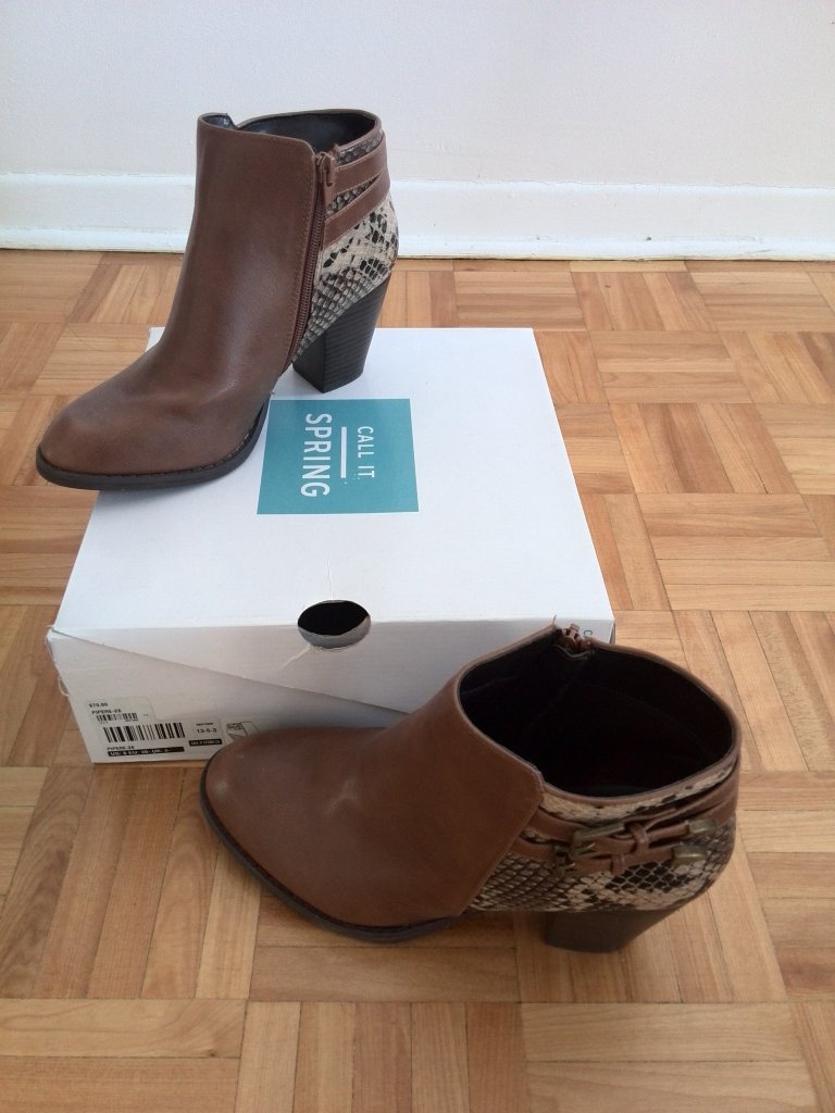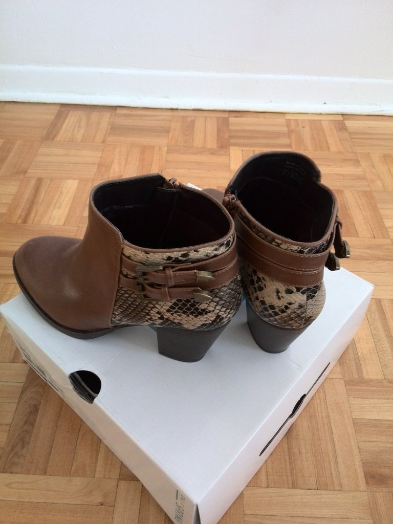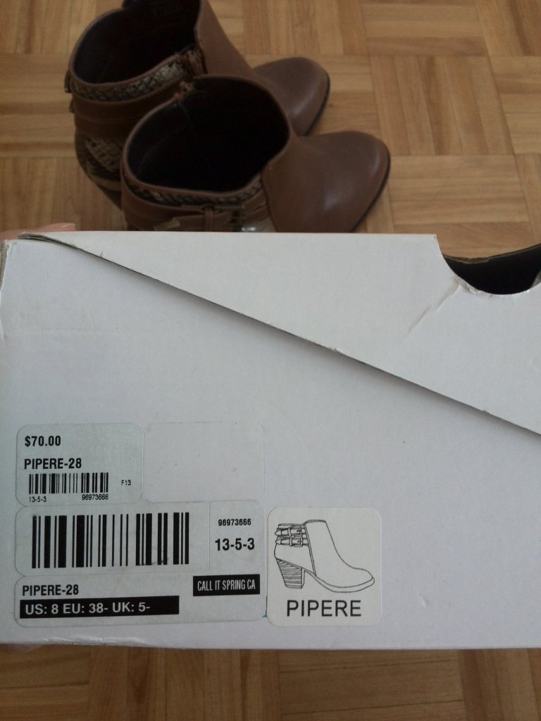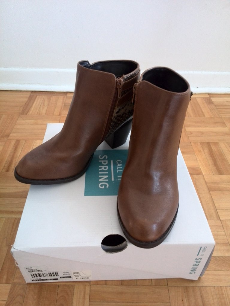去年买了之后一直没有穿过,现在要搬家不方便带走只好卖掉。原价$70, 现在以低于半折$30卖掉。鞋子很舒服,颜色也很好看。搭配裙子和紧身裤子非常搭配。从图片里可以看出鞋底都是很干净,一次都没有用过。size: 8 联系方法:yhuan065@uottawa.ca