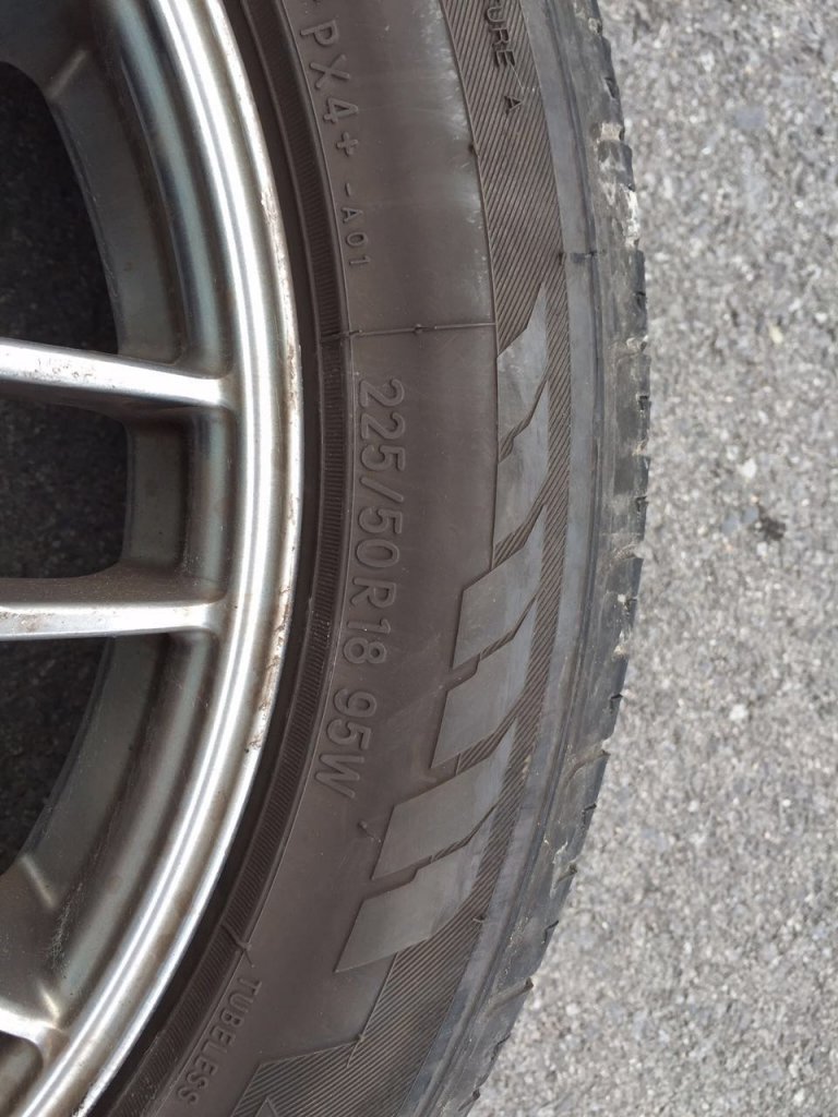 去年夏天才买 只用了一个夏天,非常新。轮毂见照片。 现在因为车买了 所以单卖胎。 SIZE 225/50/18。 原来是用在英菲尼迪G25s. 要价$600. 不还价谢谢。 我夏天买的时候1300+。电话或者短信联系 6132761036。
