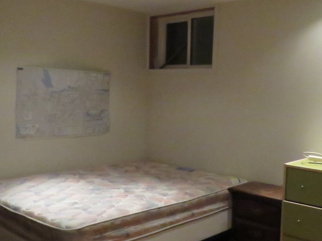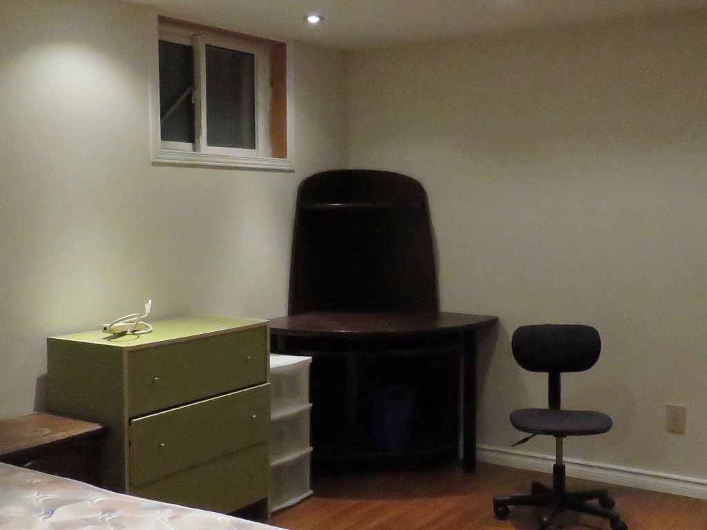 半地下室,超大,(4*3m) , 二个大窗户。二人共用干净的洗手间。350每月,