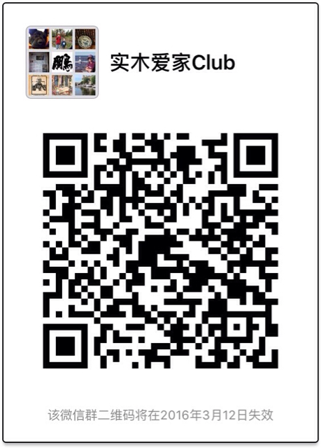 我建了个“实木爱家Club”微信群,有兴趣的亲们可以加入讨论哈