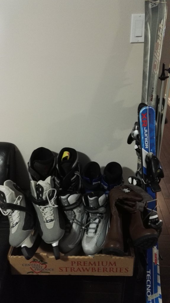 7. 滑雪板+鞋 男生和小孩的各一套 全套一起要$180 滑雪板size:大人,150cm 小孩 110cm 滑雪服,女士,全新 $50 size M 溜冰鞋,男士女士各一双,$5 each 女: US 6 UK5 EUR 38 男:US 10 uk9 eur 43 都是Nike的牌子